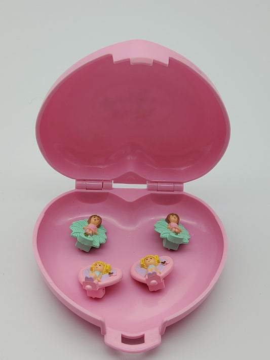 Polly pocket jewellery box with 2 pairs of earrings