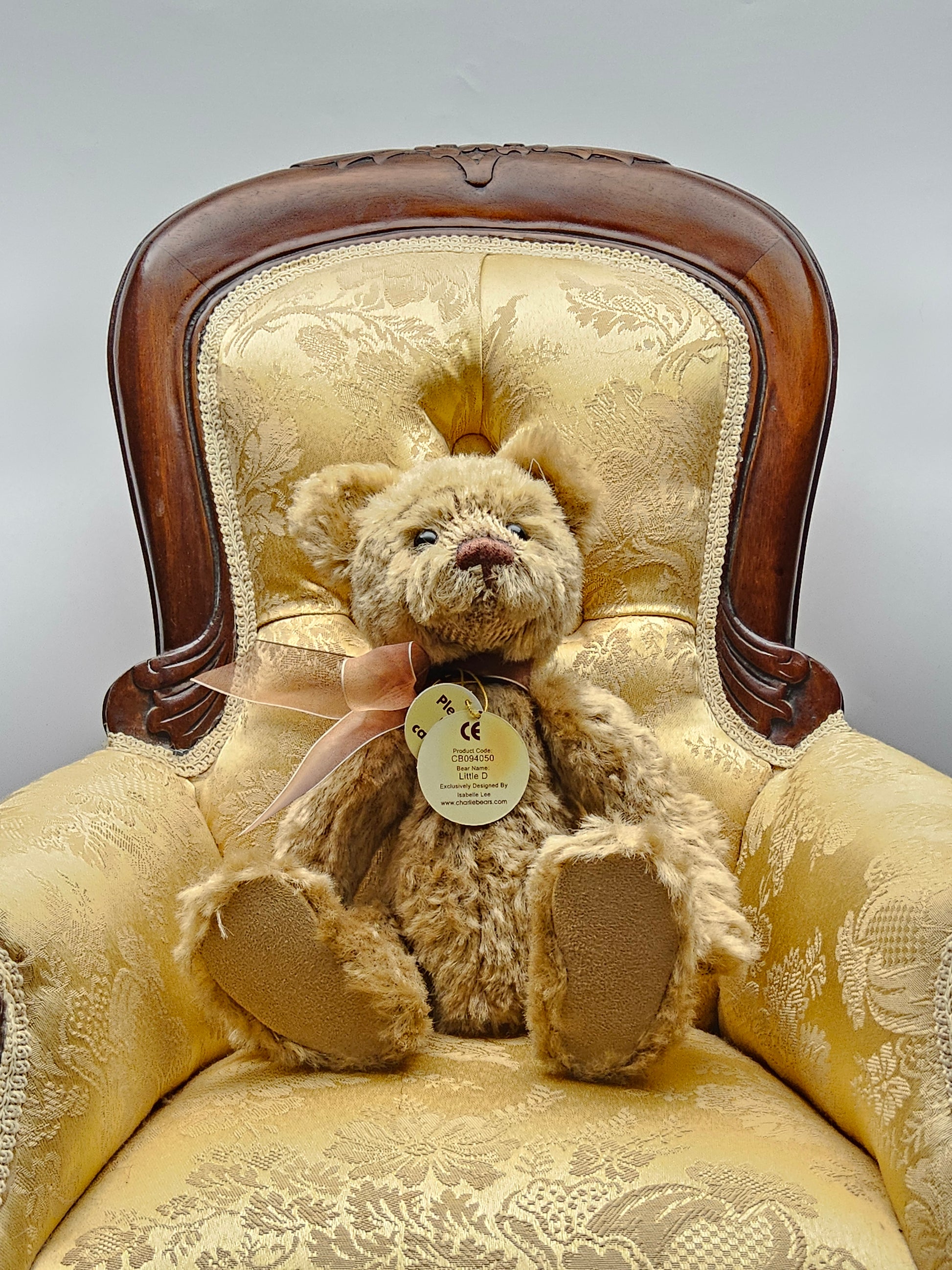 Meet Little D the small bear with the big personality. Little D measures 32 centimeters and is a QVC exclusive making her a rare bear with only 3000 being made. Little D can stand up unaided. Little D is made from a rich caramel plush with ultra suede paws and a hand stitched nose. She was designed by Isabelle Lee.