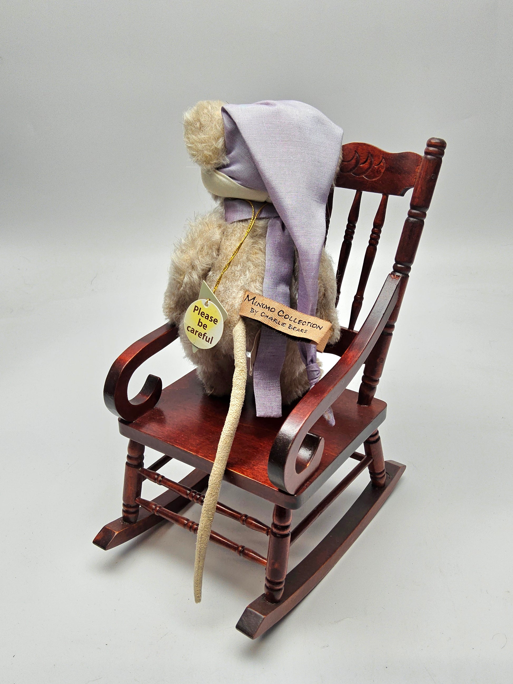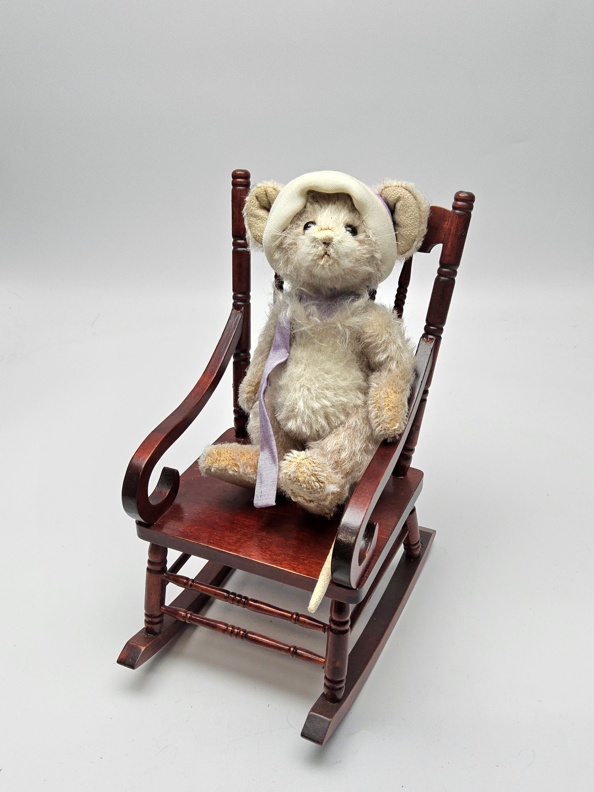 This is one of the minimo mice which measures 7 inches. She is made from mohair and features a beautiful hat and scarf. She is one of 1200 of these mice released worldwide. This little bear is in very good condition with only slightdamage on her foot with some wear on the pad. Unfortunately her limited edition label has been snapped.
