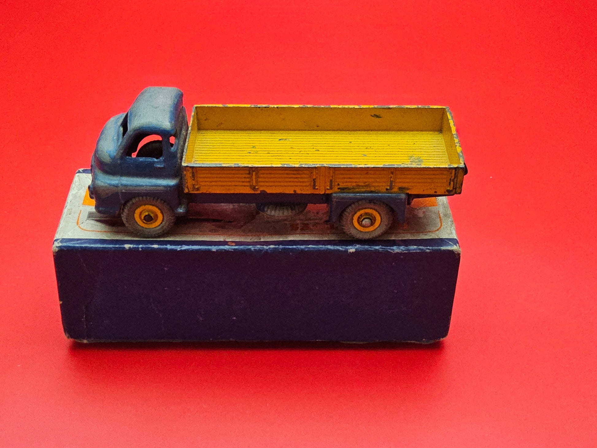The model is in played with condition. As seen the lorry has paint wear on the cab and chipping on the flat bed. The paintwork is in poor condition. The tires are in good order and the spare us still present.