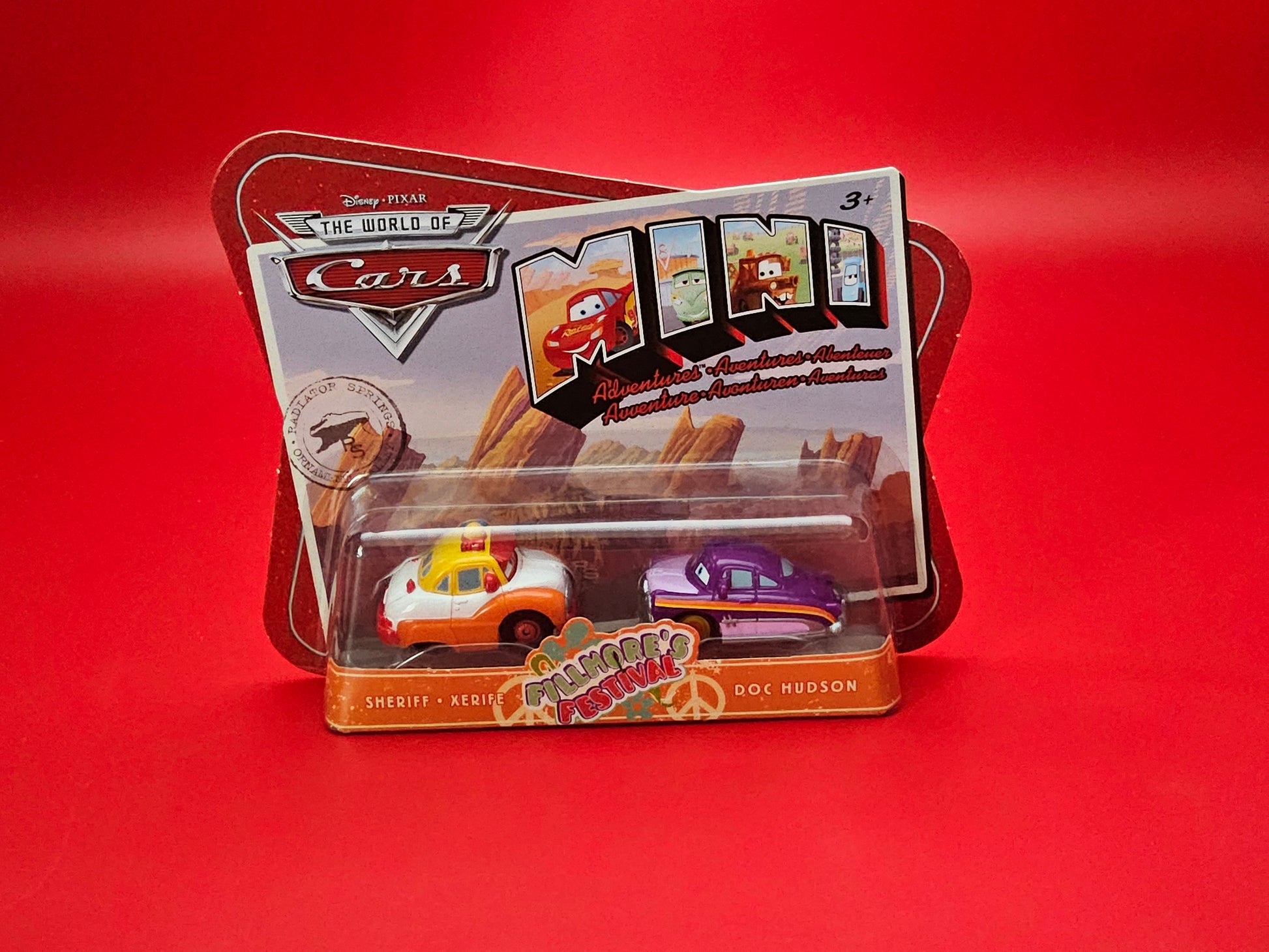 This is the Filmore festival set featuring sheriff and doc Hudson pack of mini cars which are in fantastic condition. These came to us from a private collection and have been stored away from sun light and moisture. This means the cars themselves are in mint condition.