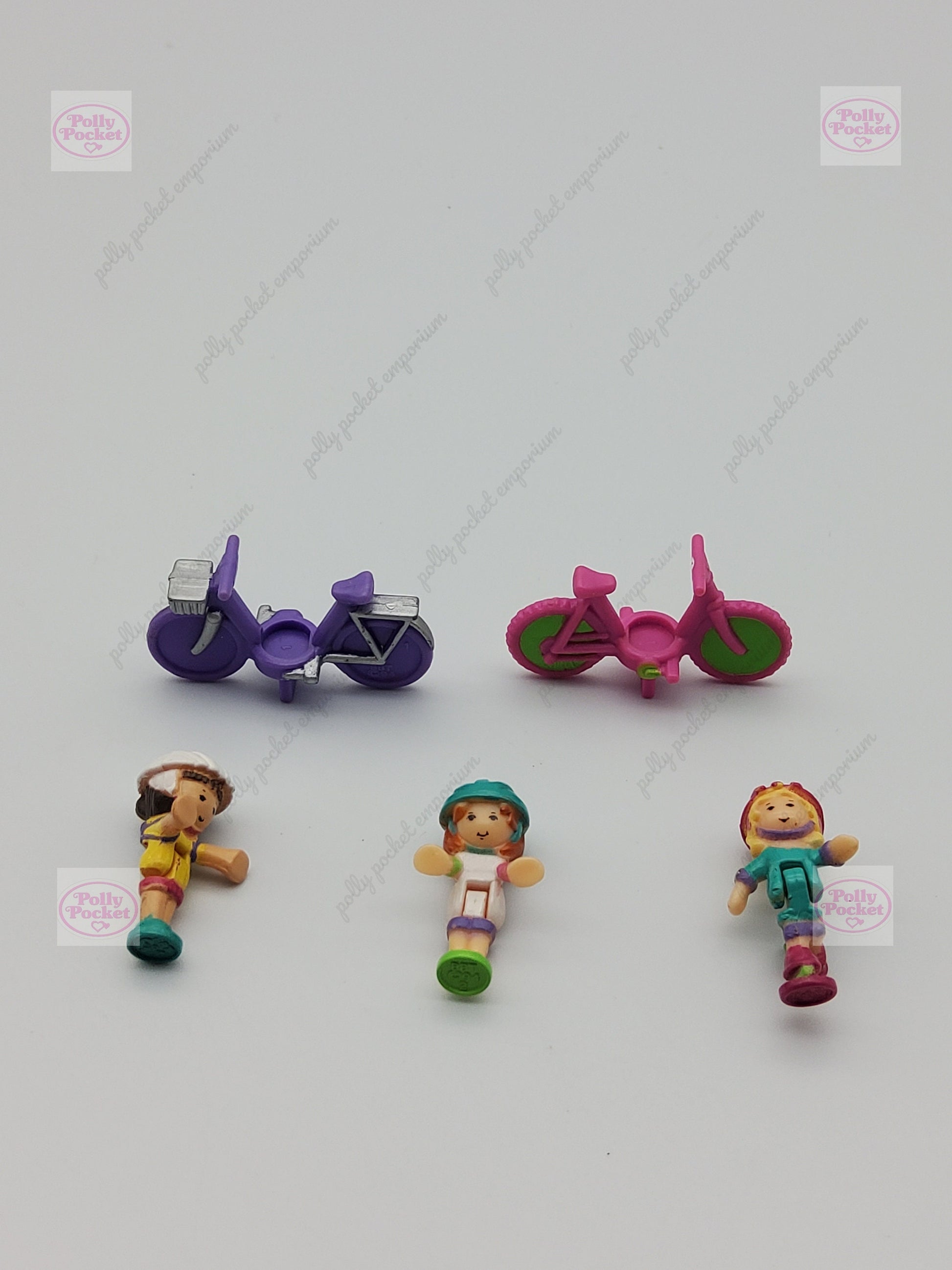 The dolls are in excellent condition with no chipping. The bicycles are also in fantastic condition.