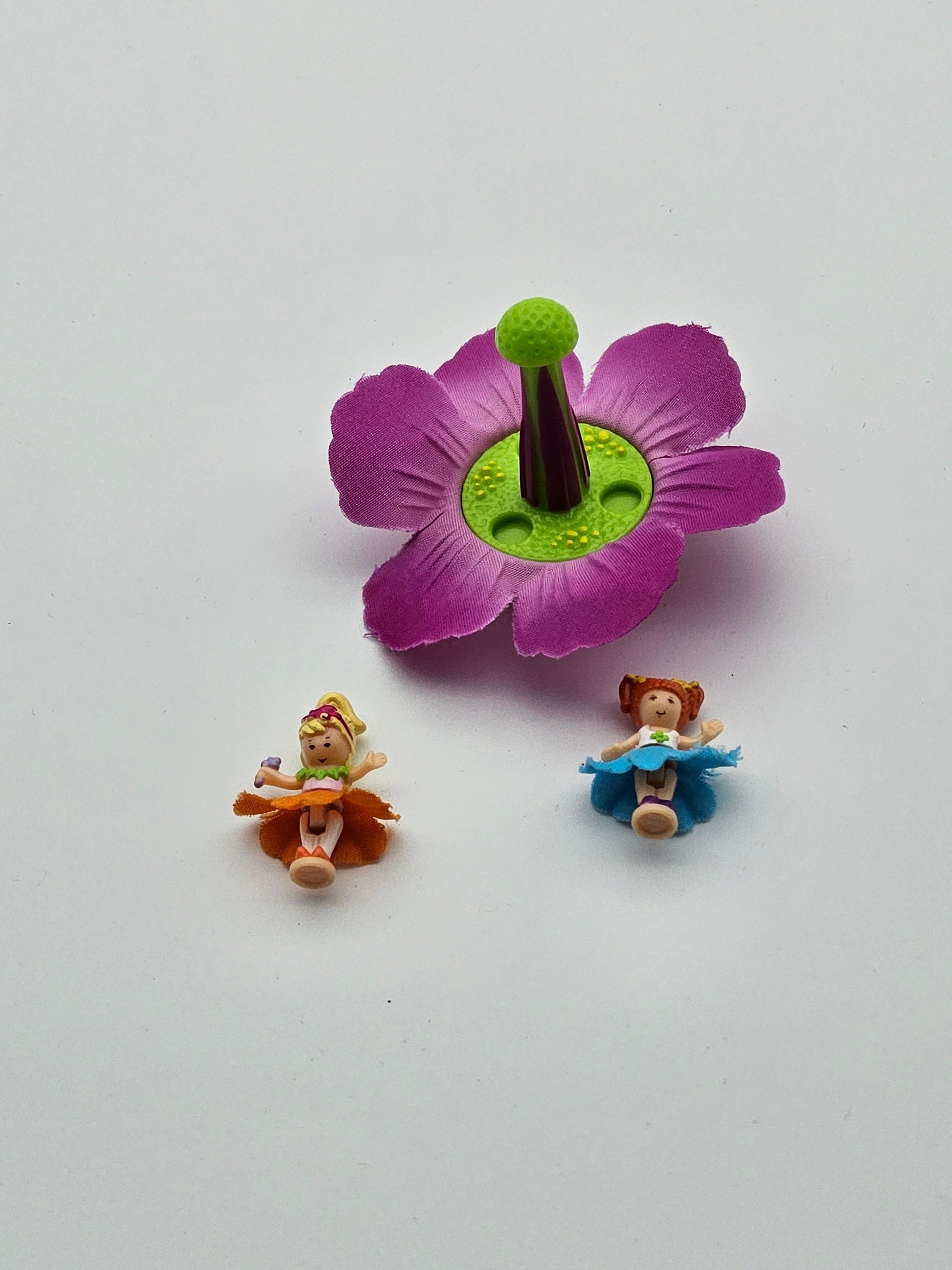 Mattel variation Polly pocket flower twirled with both original dolls.