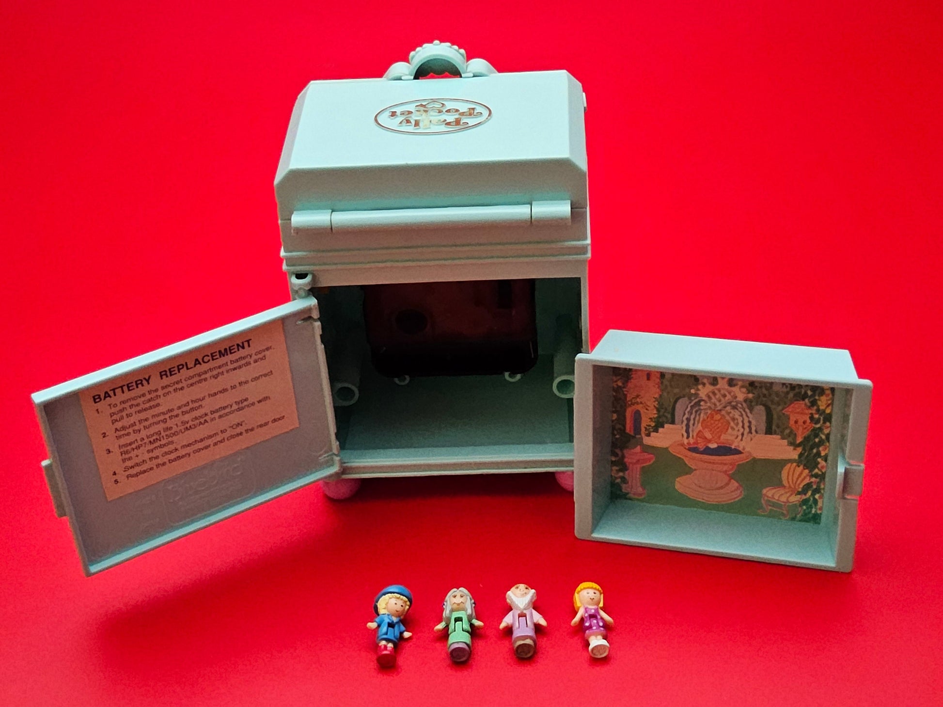 Polly pocket fun time clock blue variation. Complete with all dolls and working.