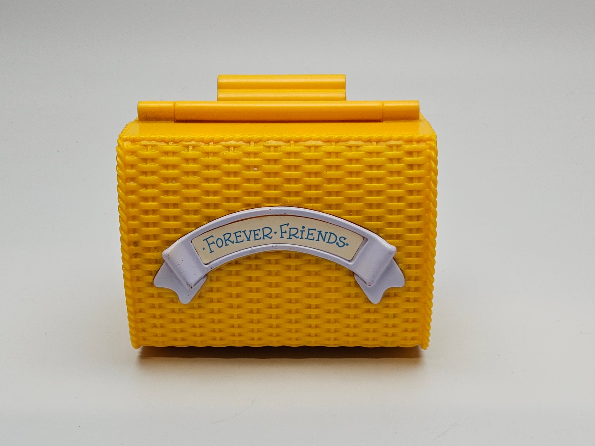 This is a great little item designed and produced by bluebird for the forever friends franchise. The set is a small picnic hamper which is in perfect condition. There is no sun fading or discolouration of the hamper which remains brightly coloured. The logo is beautifully clear as seen in the photographs. Inside the set is beautiful and has no wear.